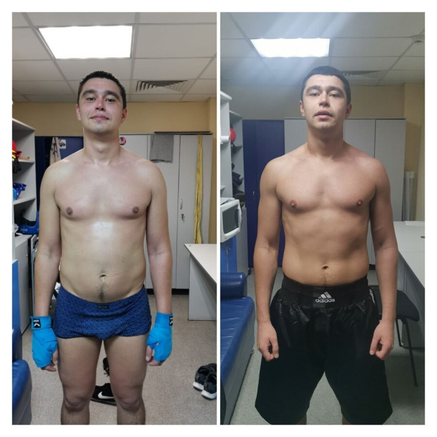 Наш главный тренер подобрал ему нужный формат тренировки. На фото ниже вы видите результат за 2 месяца занятий в нашем клубе бокса и единоборств.